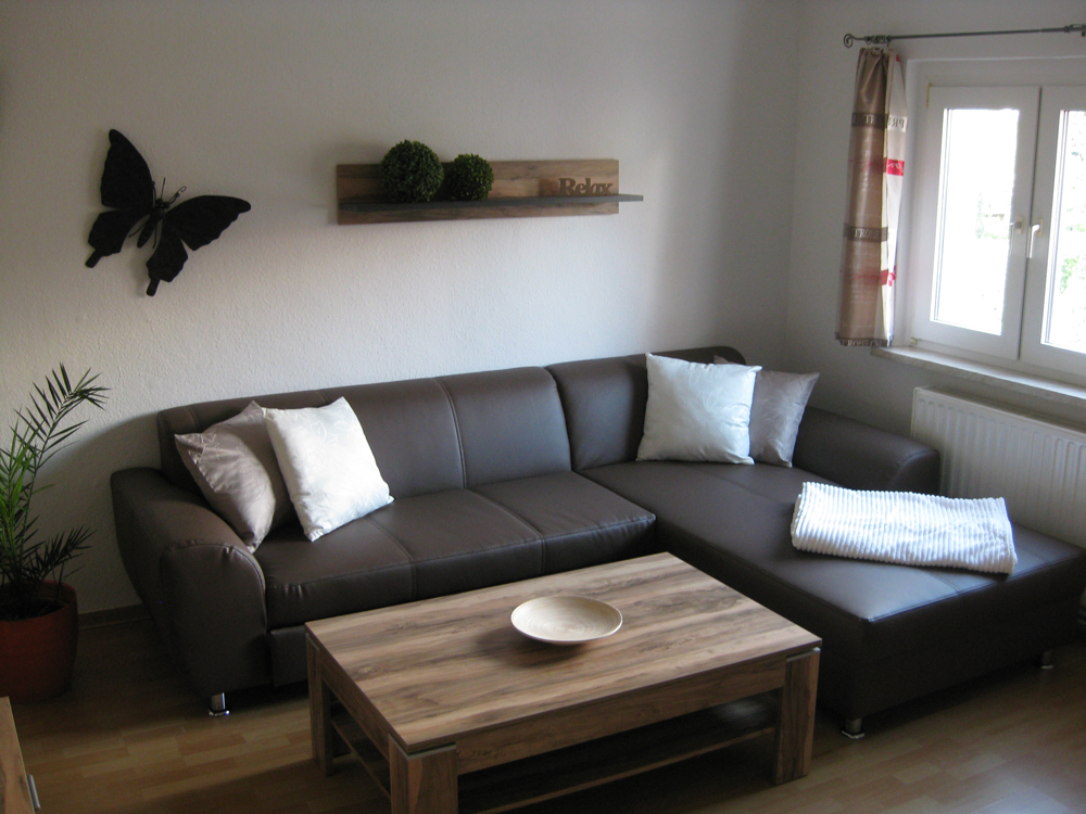 Das gemütlich eingerichtete Wohnzimmer verfügt über Capel TV und einer großen Ledersitzgruppe, die bei Bedarf zwei weiteren Gästen Schlafmöglichkeit bietet.